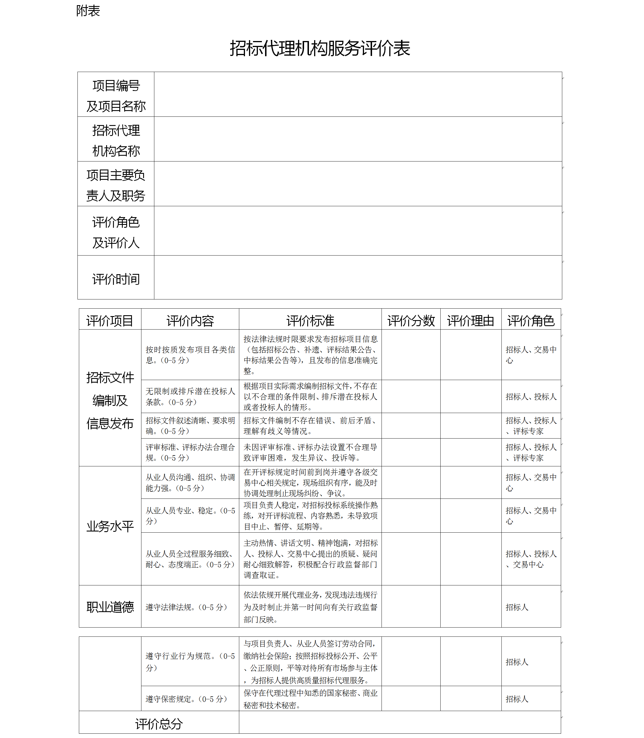 附表:招標(biāo)代理機構(gòu)服務(wù)評價表